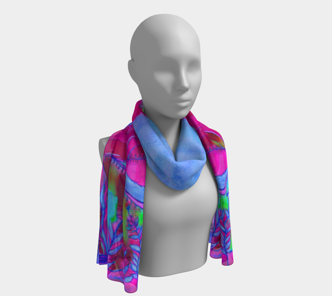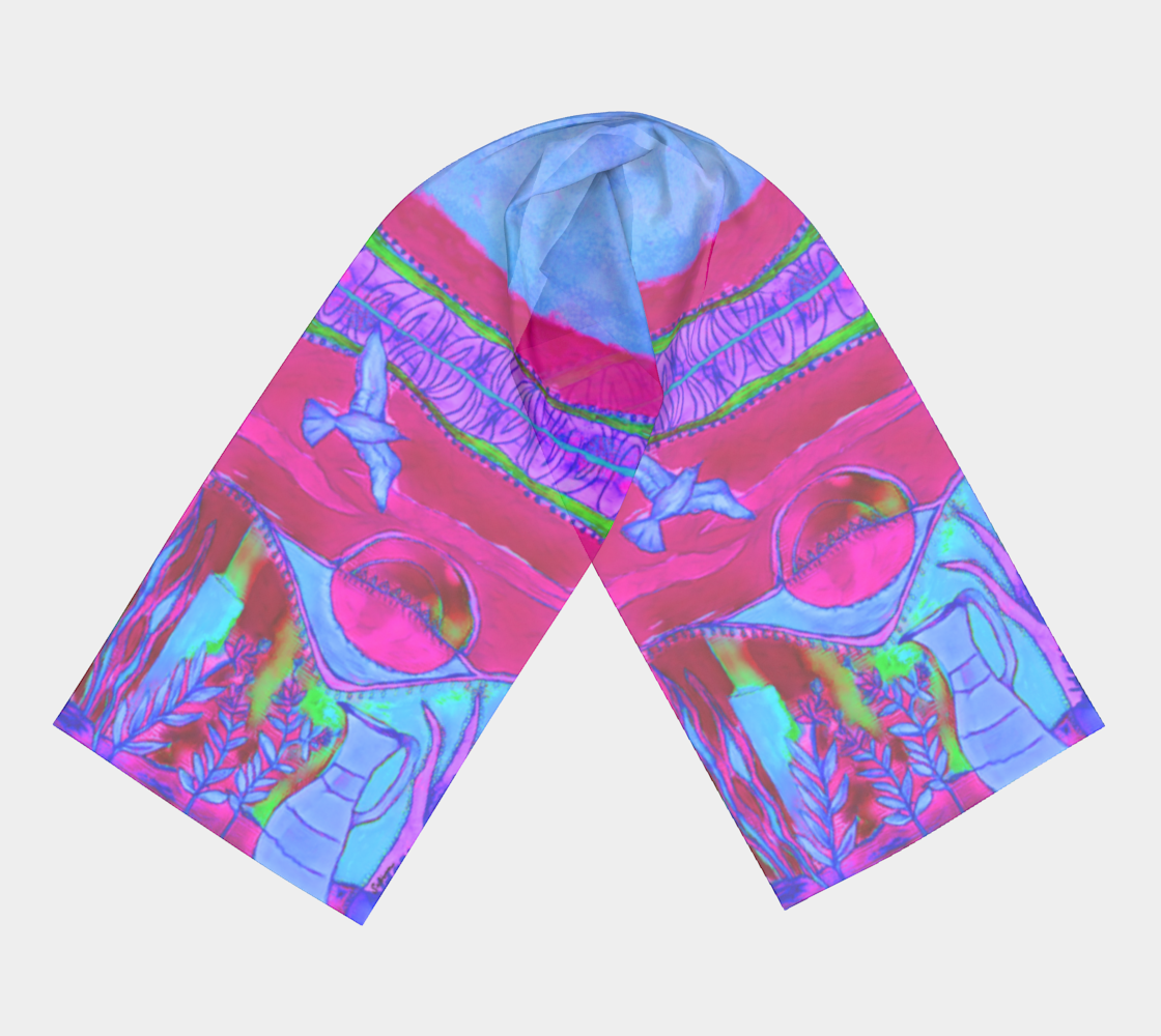 Showcasing adaptations of my artwork, these long scarves drape beautifully and flow with ease. Elegant and fluid, they’re the perfect way to dress up an outfit and carry a piece of art wherever you go.