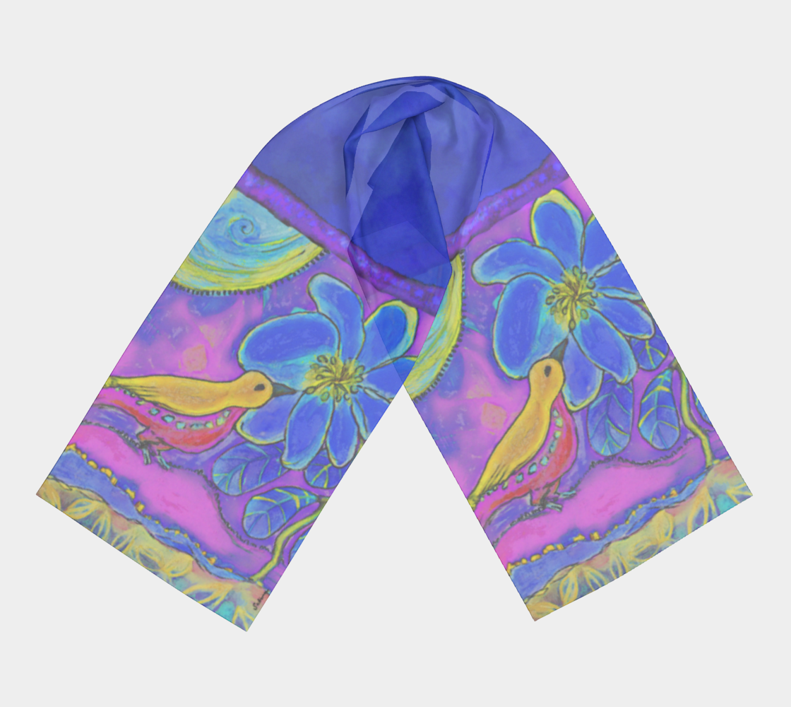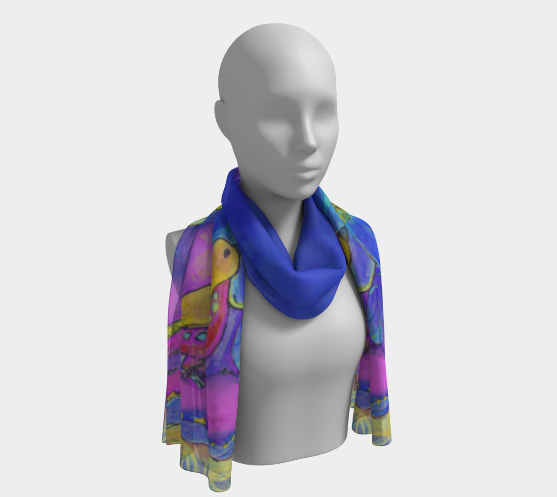 Showcasing adaptations of my artwork, these long scarves drape beautifully and flow with ease. Elegant and fluid, they’re the perfect way to dress up an outfit and carry a piece of art wherever you go.