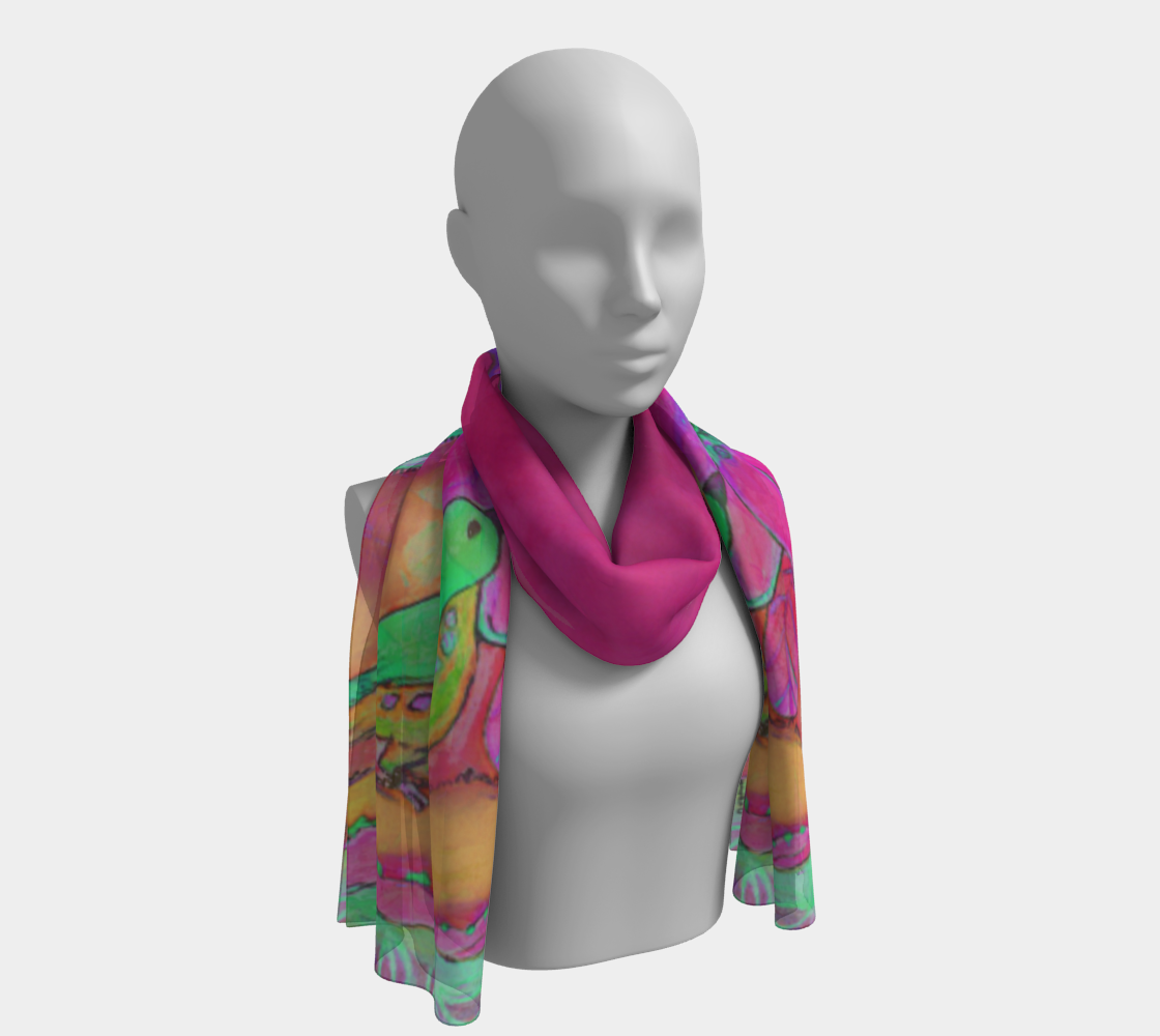 Showcasing adaptations of my artwork, these long scarves drape beautifully and flow with ease. Elegant and fluid, they’re the perfect way to dress up an outfit and carry a piece of art wherever you go.