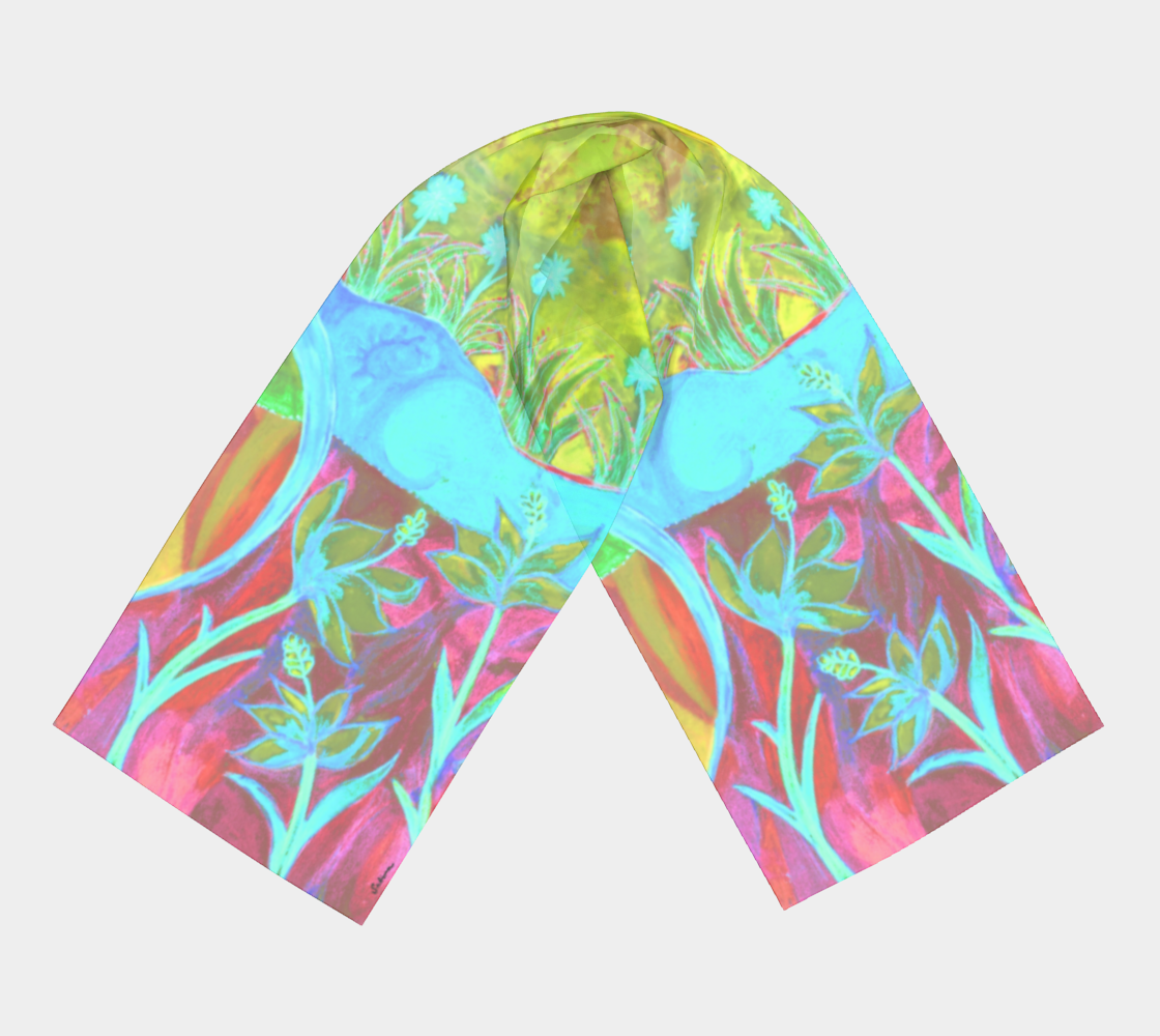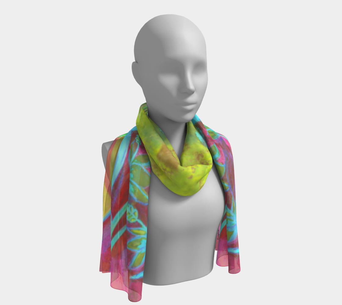 Showcasing adaptations of my artwork, these long scarves drape beautifully and flow with ease. Elegant and fluid, they’re the perfect way to dress up an outfit and carry a piece of art wherever you go.