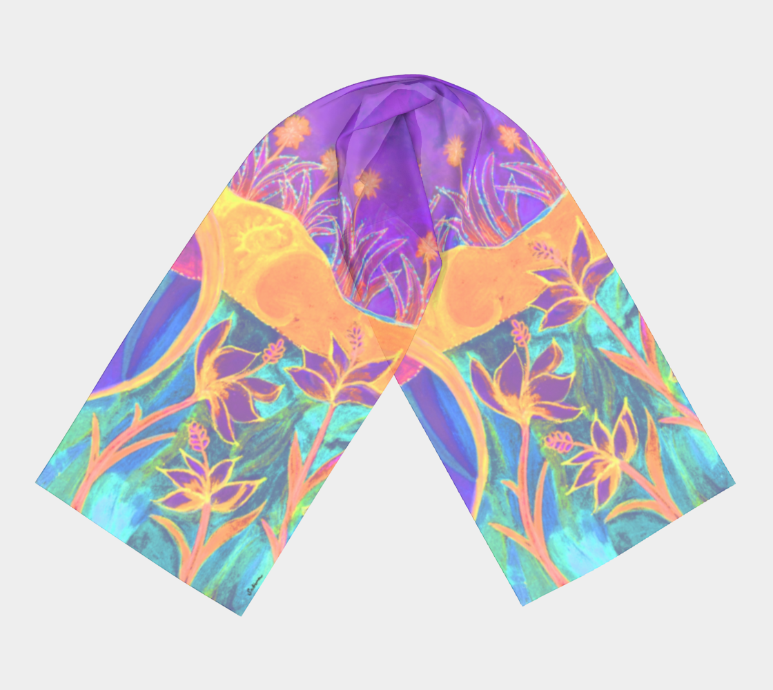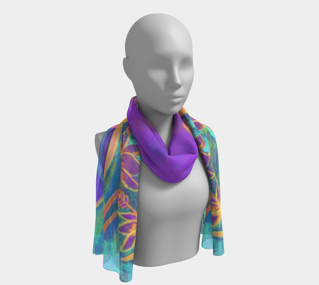 Showcasing adaptations of my artwork, these long scarves drape beautifully and flow with ease. Elegant and fluid, they’re the perfect way to dress up an outfit and carry a piece of art wherever you go.