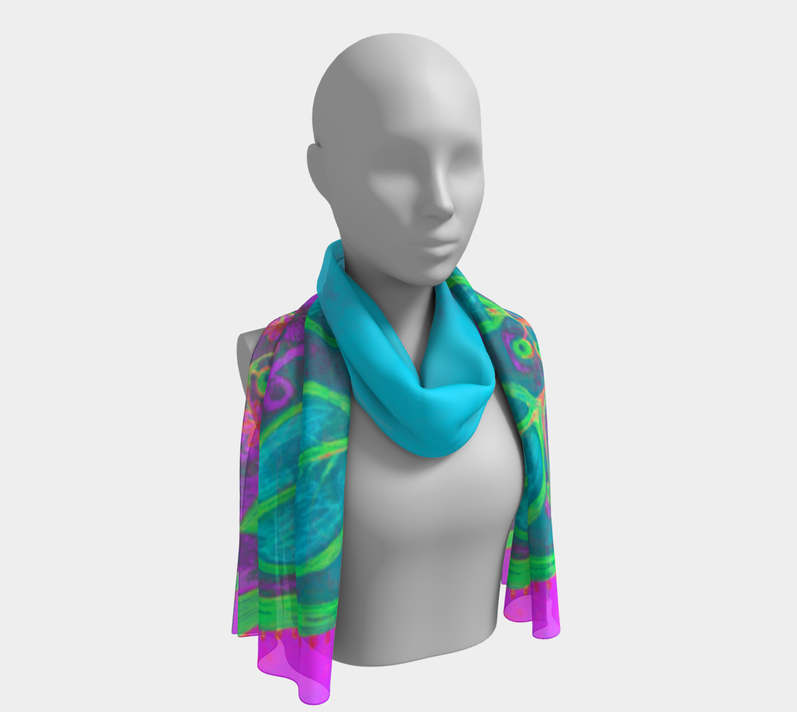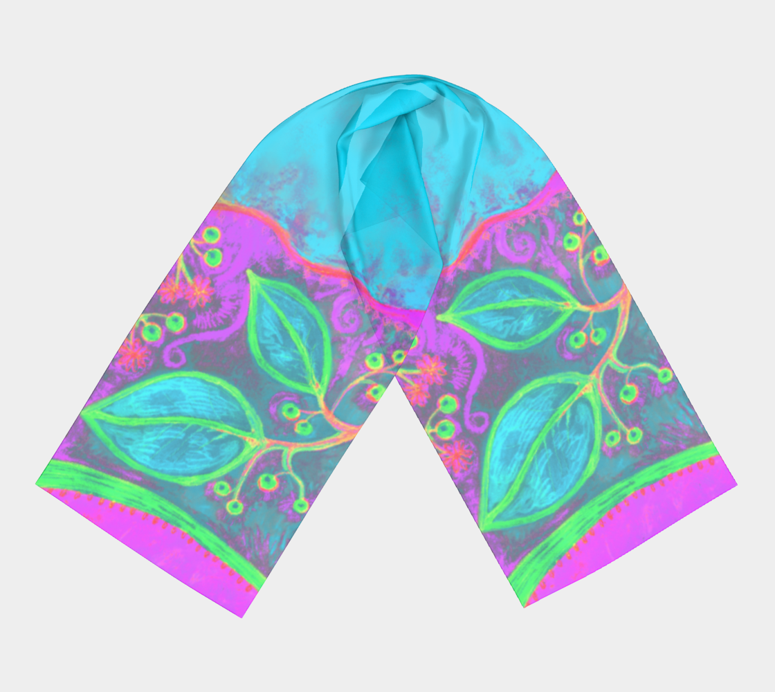 Showcasing adaptations of my artwork, these long scarves drape beautifully and flow with ease. Elegant and fluid, they’re the perfect way to dress up an outfit and carry a piece of art wherever you go.